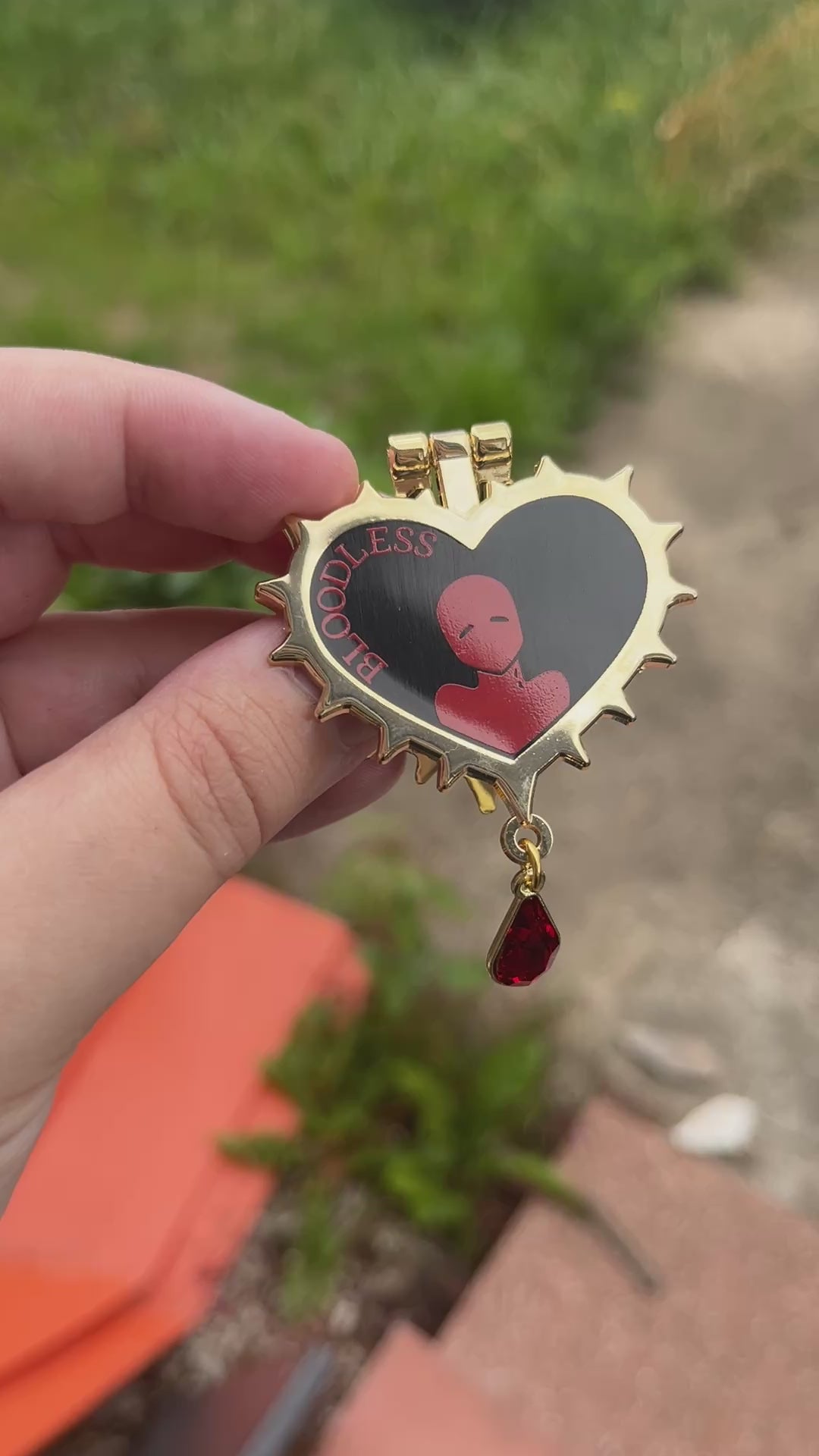 Perfect for all of Astarion's willing blood bags/Capri Suns out there! Gold plated with a little blood drop gem, let everyone know why you're feeling a little extra tired than usual! ;P