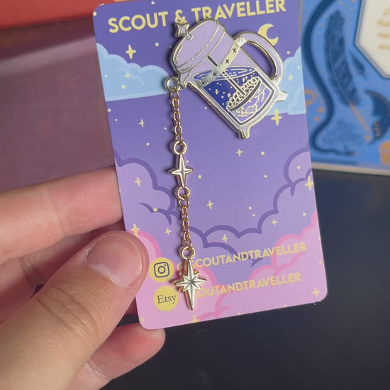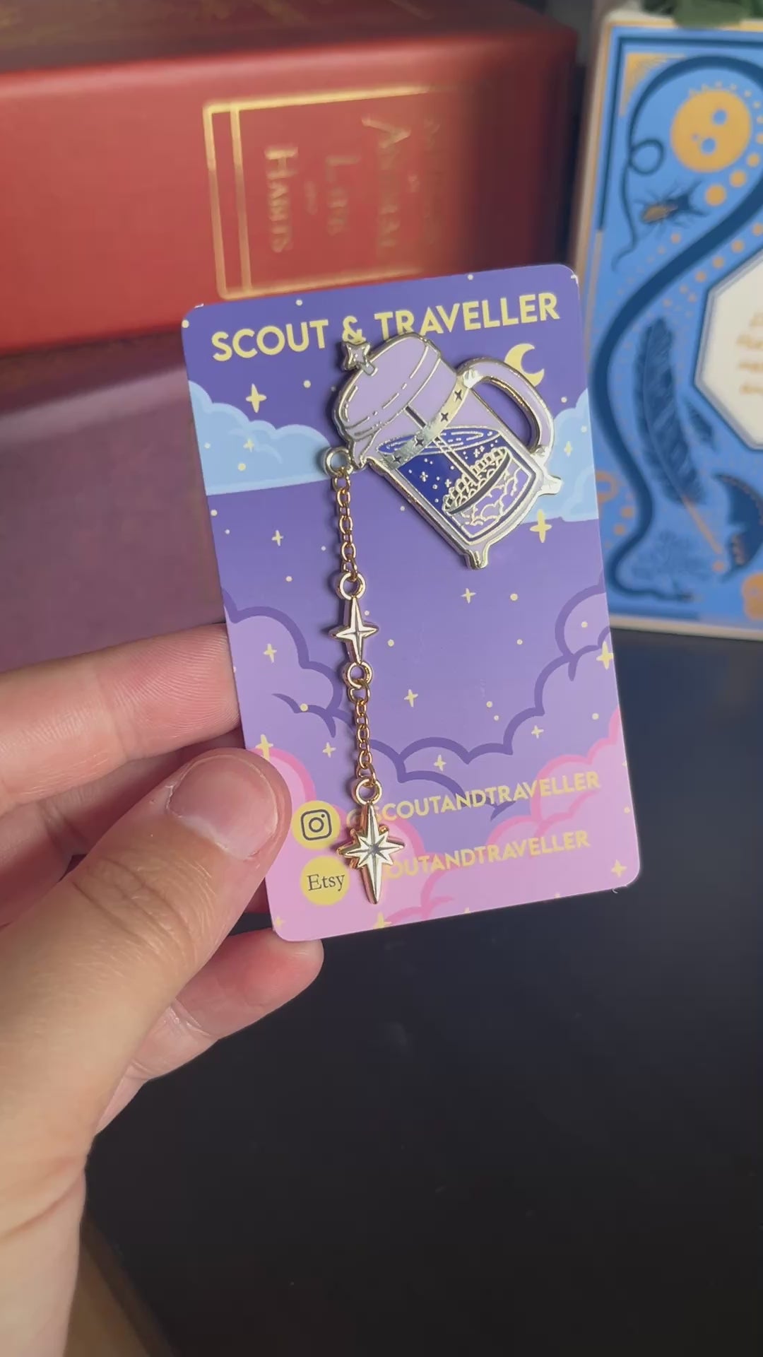 Add a little starlight to your look with one of these teapot pins, super whimsical (I think so anyway!) with a little chain of dangling stars, a unique addition to either your outfit or collection!