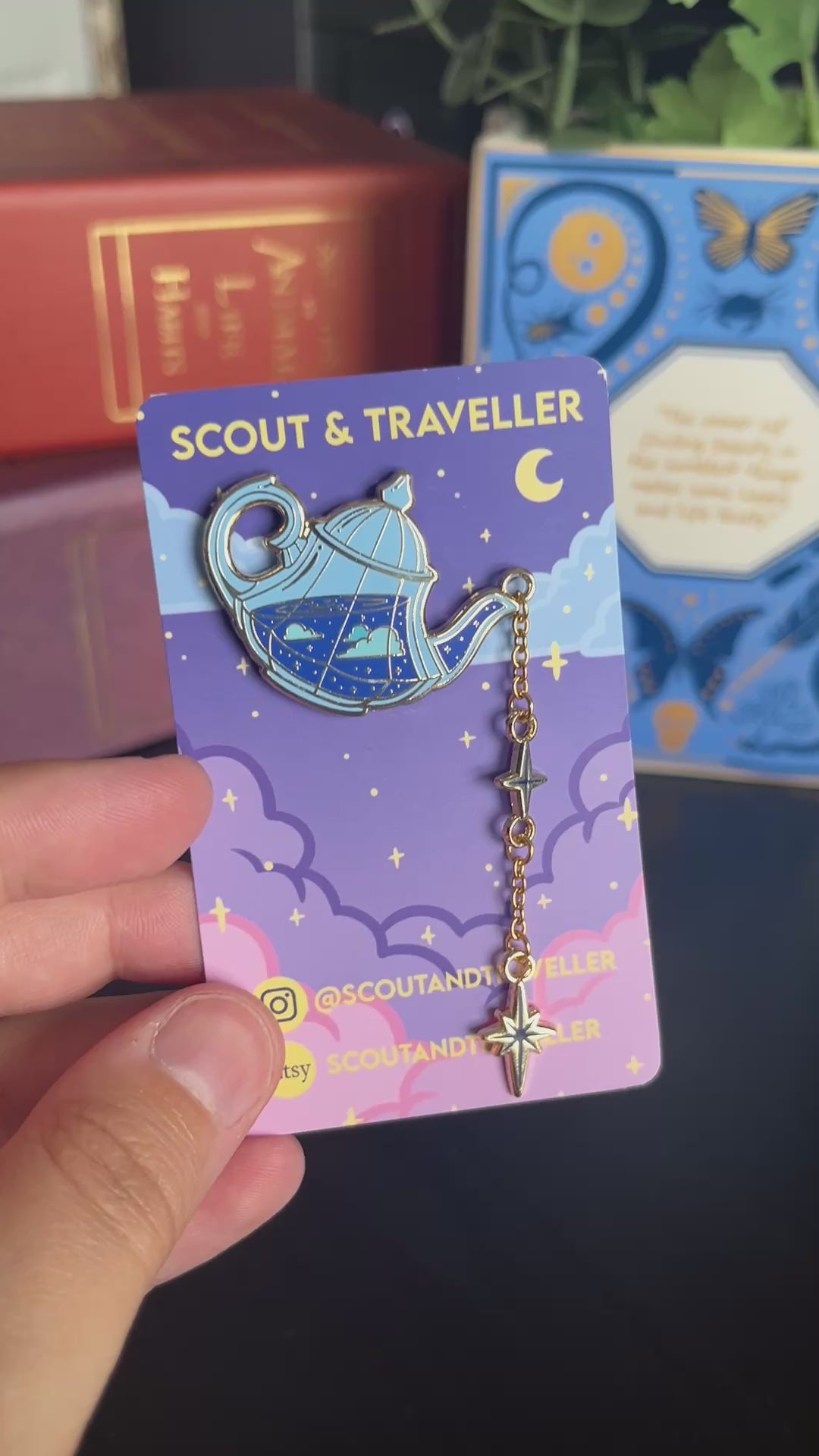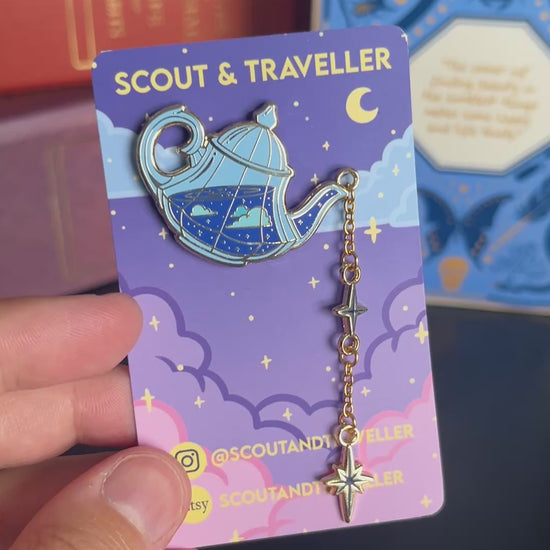 Add a little starlight to your look with one of these teapot pins, super whimsical (I think so anyway!) with a little chain of dangling stars, a unique addition to either your outfit or collection!